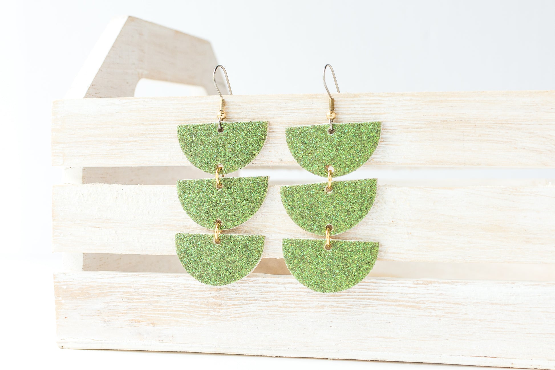 Leather Earrings / Tri Luna / Spinach Sparkle