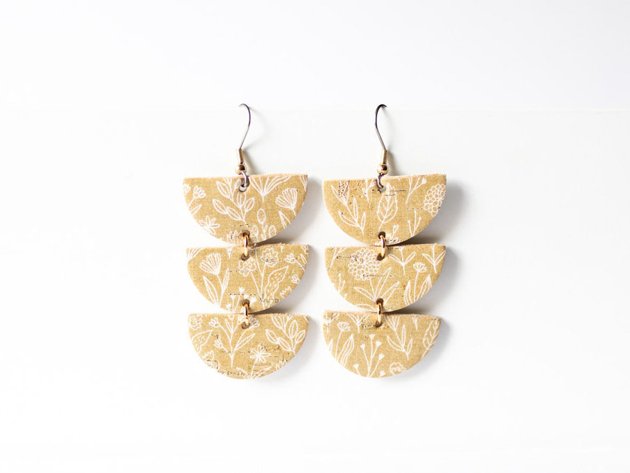 Leather Earrings / Tri Luna / Straw Flowers Cork
