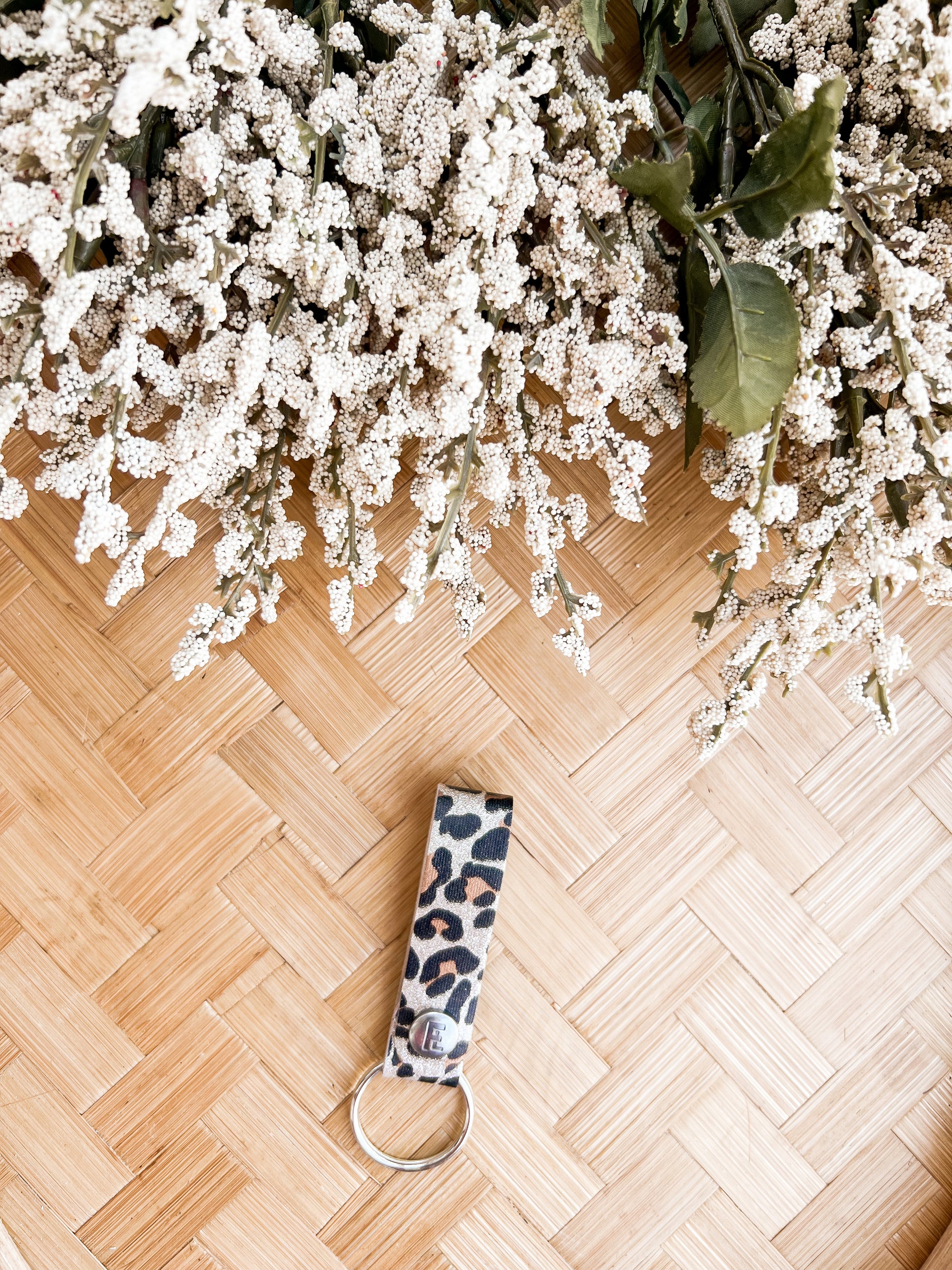 Leather Keychain / Snap Loop / Sparkle Leopard Gold