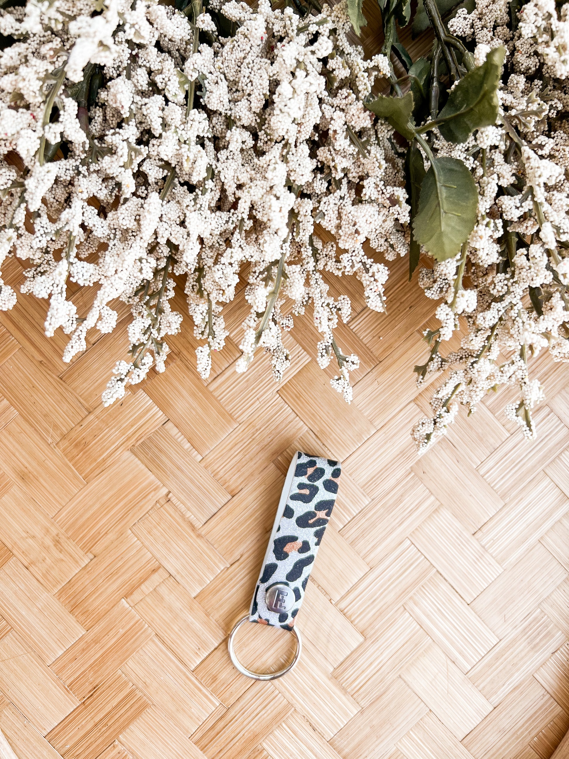 Leather Keychain / Snap Loop / Sparkle Leopard Silver