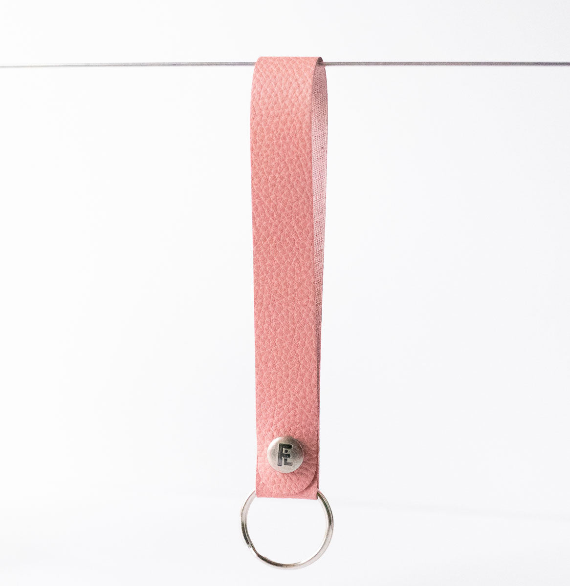 Leather Wristlet Keychain / Snap Loop / Strawberry Cream