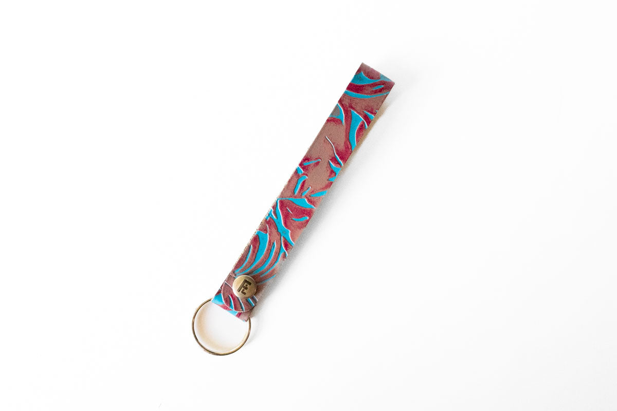 Leather Wristlet Keychain / Snap Loop / Tropical Hibiscus